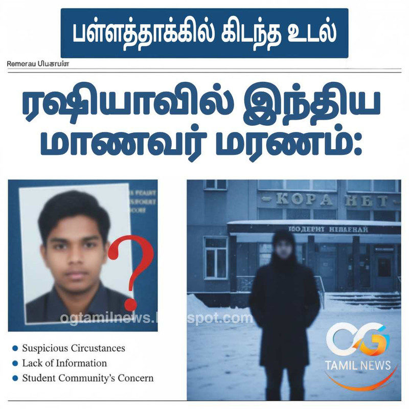 ரஷியாவின் பெல்கரோட் பிராந்தியத்தில் மருத்துவ கல்வி பயிலும் இந்திய மாணவர் ஒருவரின் மரணம் மர்மமாக மாறியுள்ளது. சில நாட்களாக காணாமல் போனதாக புகார் அளிக்கப்பட்டிருந்த நிலையில், ஆழமான பள்ளத்தாக்கில் அவரது உடல் கண்டெடுக்கப்பட்டது.