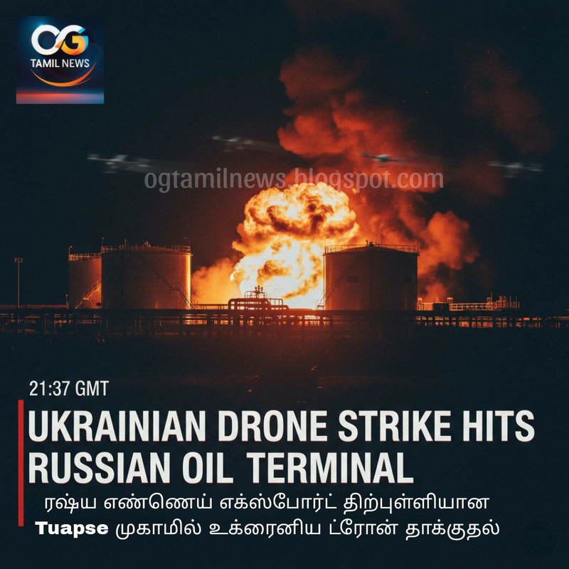 உலகப்போரின் வடுகாகும் நிலையில், Tuapse என்ற ரஷ்யாவின் கருங்கடலுக்கரையான முக்கிய எண்ணெய் இறக்குமதி-ஏற்றுமதி முகாமில் உக்ரைனிய விமானமில்லா விமானங்கள் (ட்ரோன்கள்) தாக்குதல் செய்துள்ளன.